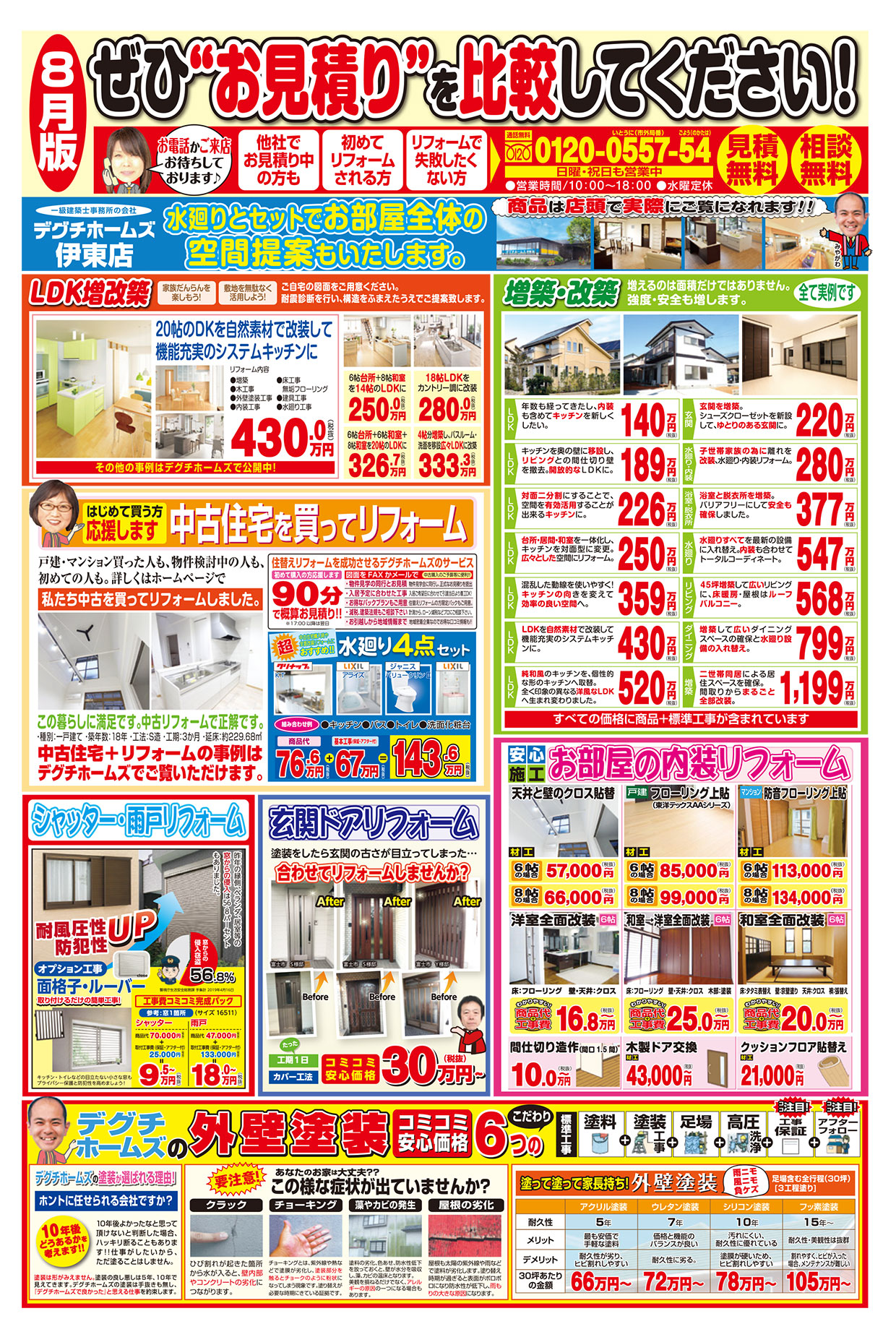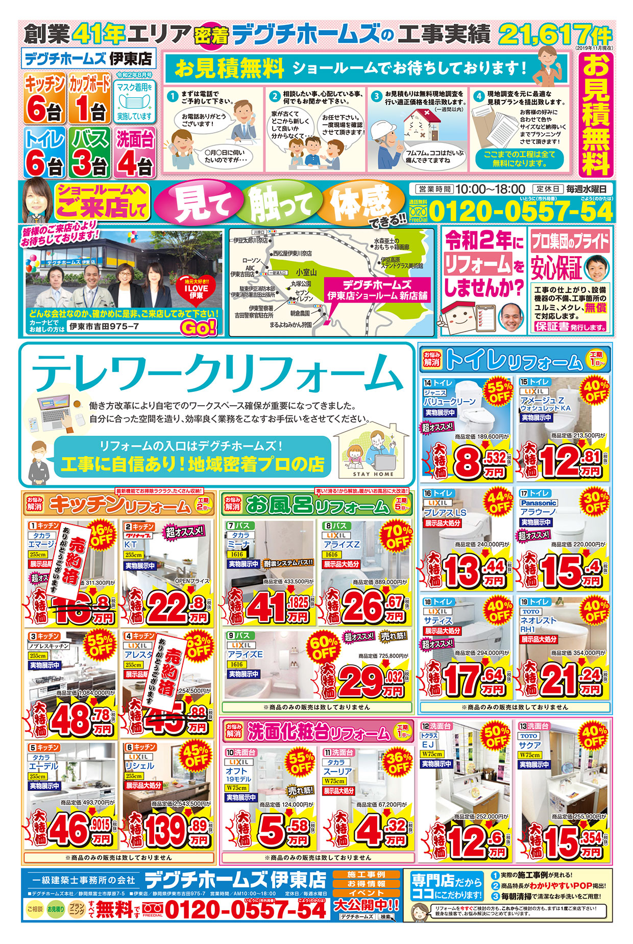 表面は、伊東店のご紹介をはじめ、キッチン・お風呂・トイレ・洗面化粧台のお買い得商品を掲載。