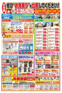 裏面は、様々なリフォーム工事の参考価格を掲載。LDKの増改築プランや、中古住宅を買ってリフォームの提案、お得な『水廻り4点セット』をご紹介。