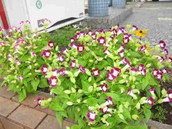 本社の北面と南面、大月線を挟んで花がいっぱい咲いていて、車からでも見ることができます。