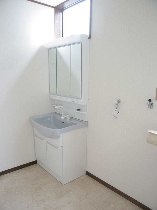 また、脱衣室にて化粧台の交換と、天井・壁ビニールクロス・床クッションフロアの張り替えをしました。