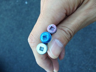 長く青いビスは土台と、短いシルバーのビスは柱と固定します。