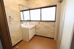 洗面化粧台の交換と天井、壁ビニールクロスと床クッションフロア貼り替えをし雰囲気が変わりました。 壁のビニールクロスは、縦貼りを横貼りで貼ってもらい手間をかけてもらいました。