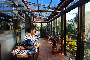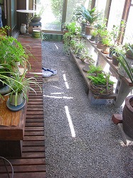 今までは砂利の上に植栽を置くだけでしたが、ここに土間を打ち、湿気対策もして床を造りました。椅子やベッドを置いて日光浴も出来ます。