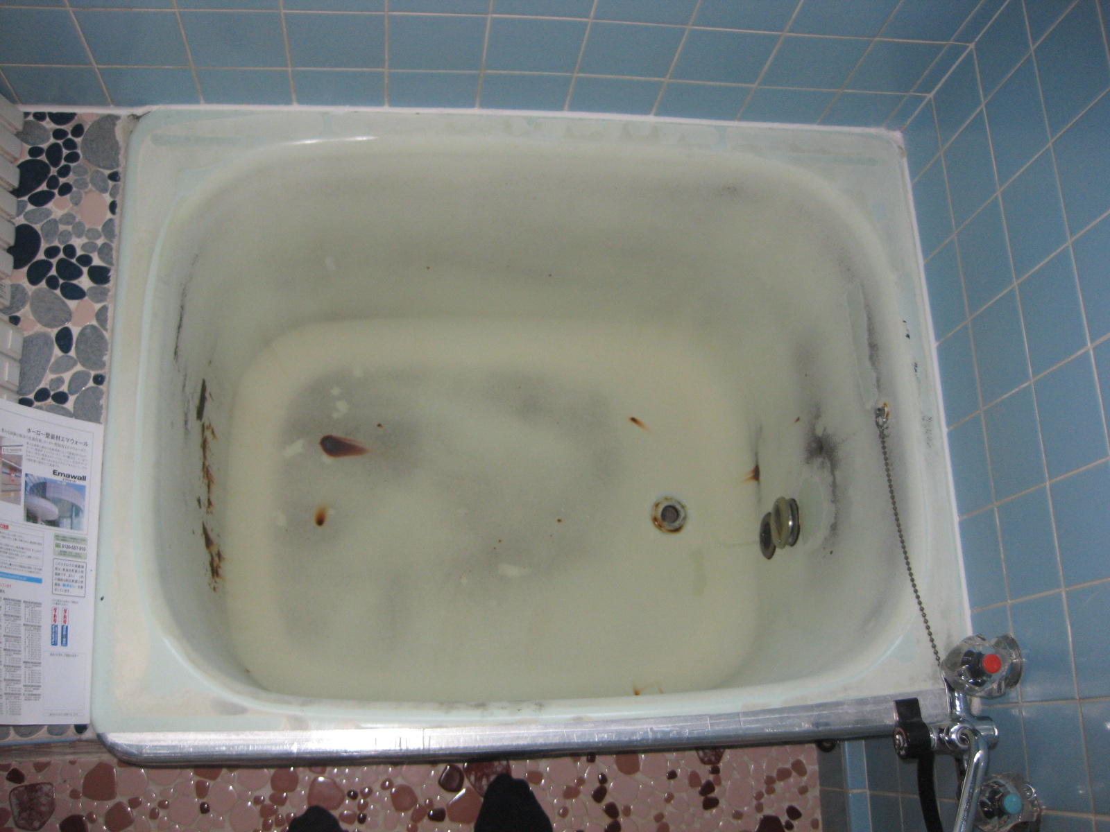 古くなりサビが出てきたホーロー浴槽をきれいにしたいと希望されたH様。ホーローを塗装することは難しいため浴槽の交換を提案し、タカラスタンダードのカラーステンレス浴槽を採用して頂きました。
