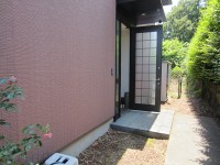 既存の玄関タイルは、新しくなった外壁の明るいカラーと