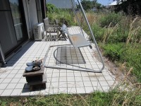 お庭にはタイル仕上げのバルコニースペースがありました。