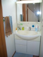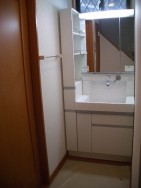 サイズもピッタリで収納量も大幅に増え、洗面化粧台の交換に合わせて壁紙も貼り替えたのですっきりきれいになりN様には大変喜んで頂けました。