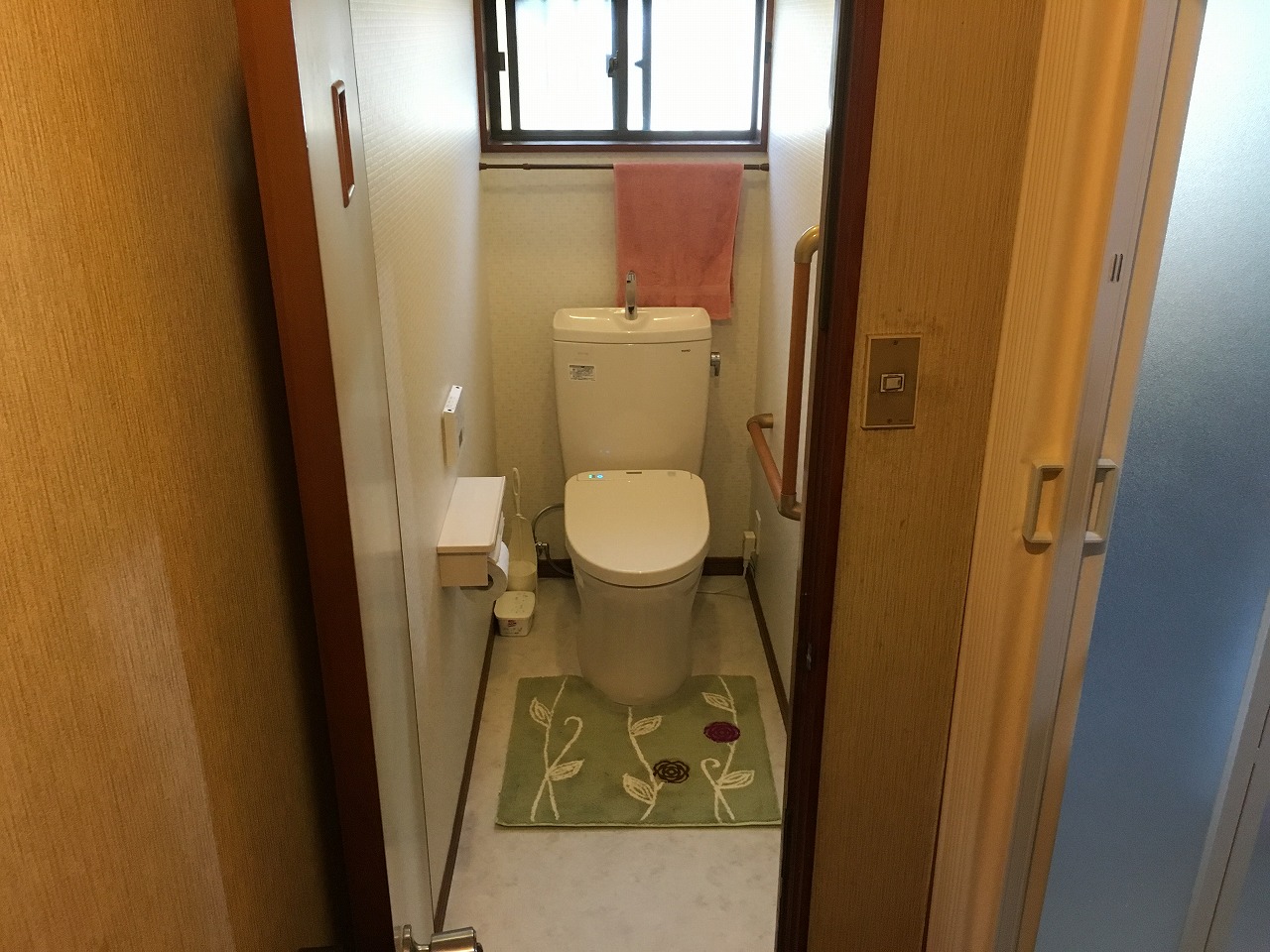 トイレを新しくする際に内装も新しくして、L型手摺りも付けました。