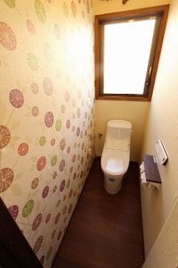 側面をアクセントクロスとしてトイレ内部を素敵な空間に