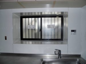 キッチンの出窓は木製で老朽化していました。既製品の