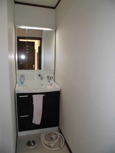 物入れのあった所に洗面化粧台を設置しました。クリナップ