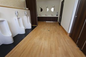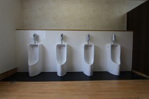 小便器前はクロスや、アイカパネルを使用し、アクセントをつけました。