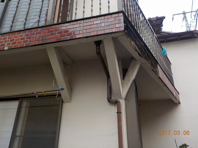 雨が入り込んでしまい、タイルが割れて剥がれてしまい、