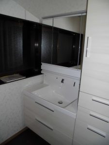 オプションで付けました。既存の洗面化粧台は幅が1200㎜と