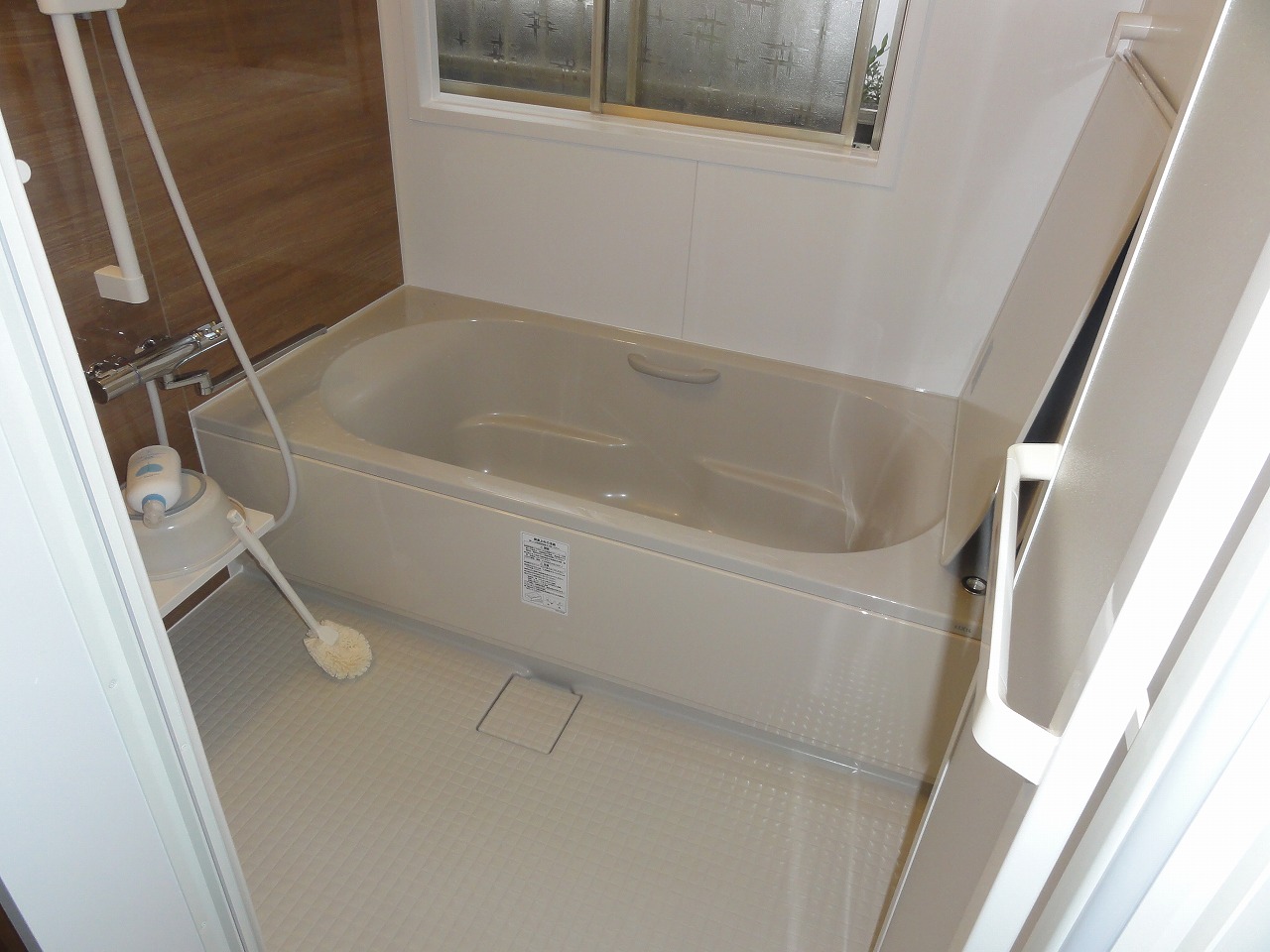 浴室のアクセントパネルも木目調を選び、温もりあるお風呂になりました!
