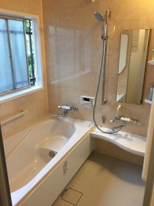 工事後、お客様から暖かいお風呂に入れてとても満足していると