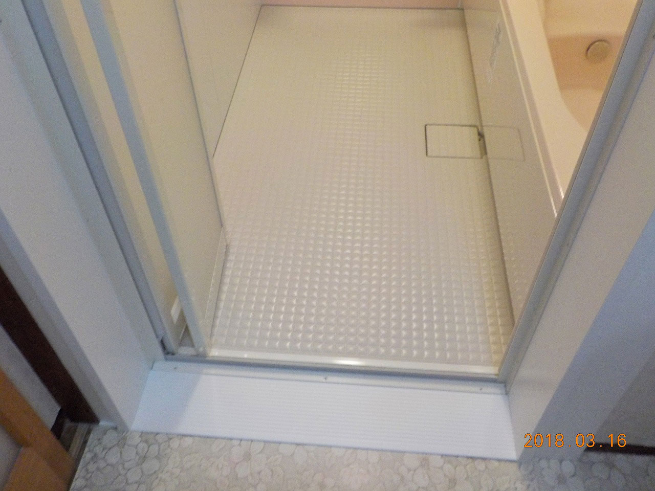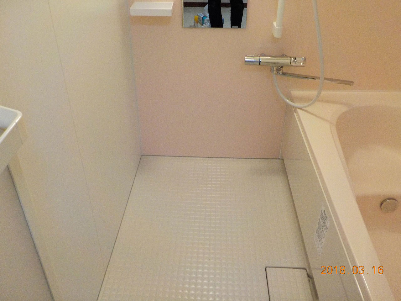お風呂の隣の洗面脱衣室はそのままで、お風呂のみの工事です。