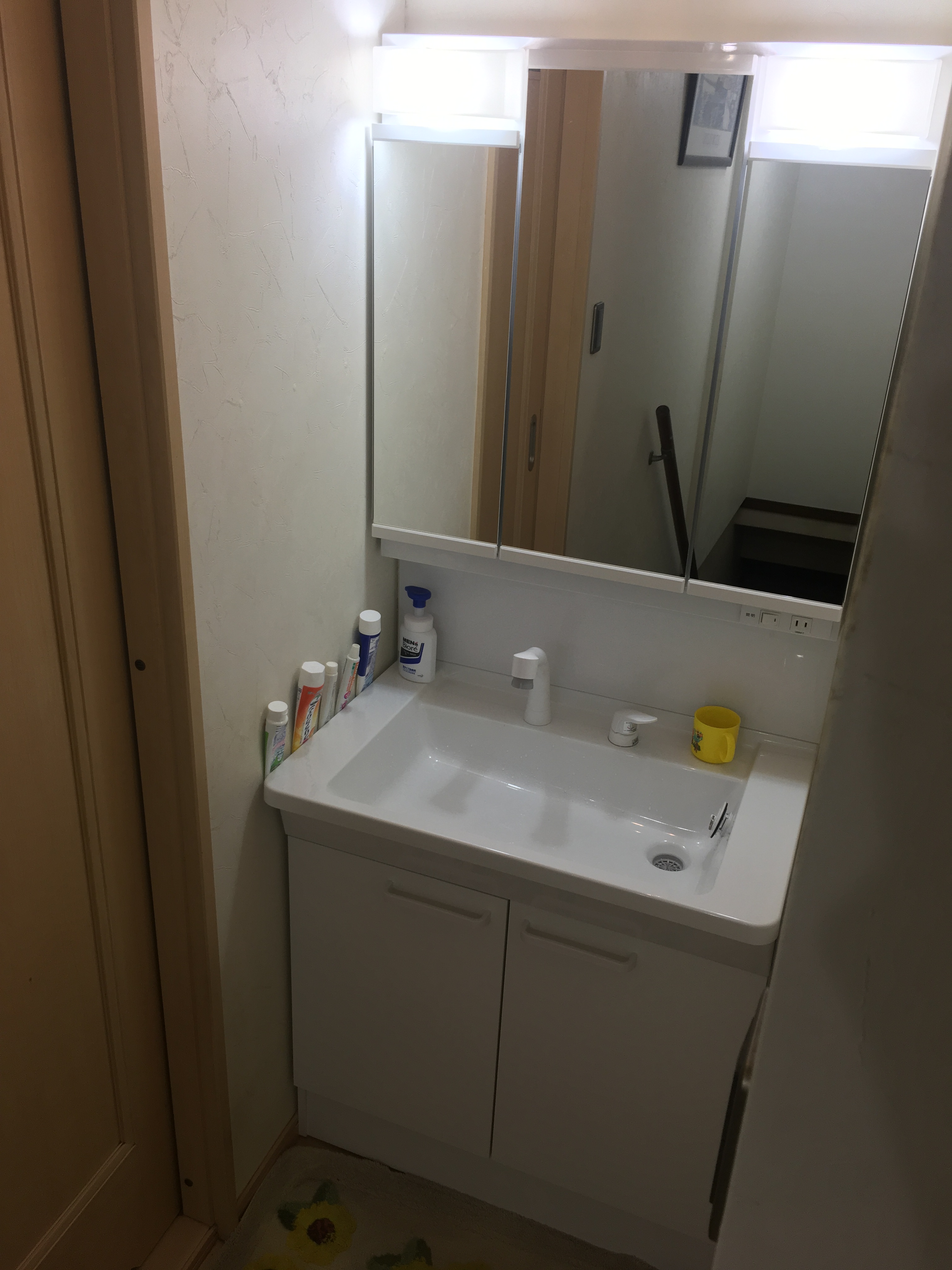 実際新築当時から使っていたため、老朽化が原因でしたが、修繕をして使って頂いていましたが、良い洗面台があればと来店して頂き、今回はTOTOのVシリーズという洗面台を採用して頂きました。