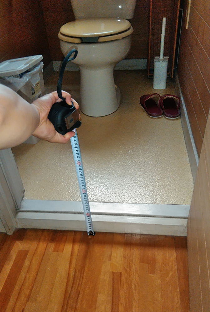 ・お母様の脚が不自由になってきた為、トイレの入口の段差をなくすバリアフリー工事が目的。