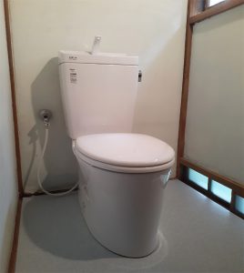 築50年を迎えるお宅です。既存のトイレも2002年に廃盤になっていたものだったのでLIXILのアメージュに替えました。同時に床のたわみ解消のため下地交換も行いスッキリ明るくなりました。