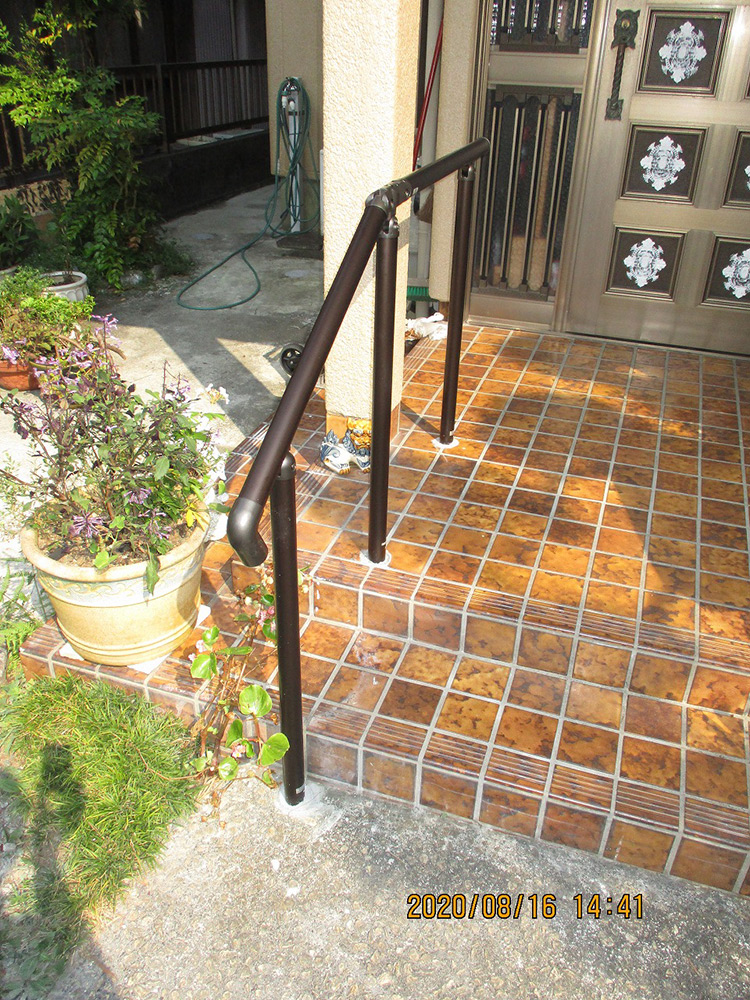 玄関アプローチに手すりを設置させて頂きました。