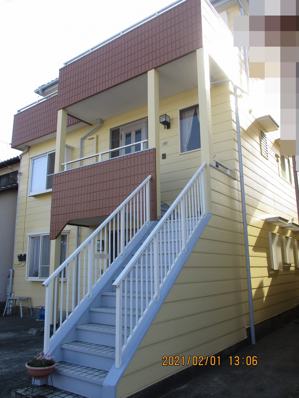 外壁はベランダ周りにアクセントをつけ、明るい外観になりました。