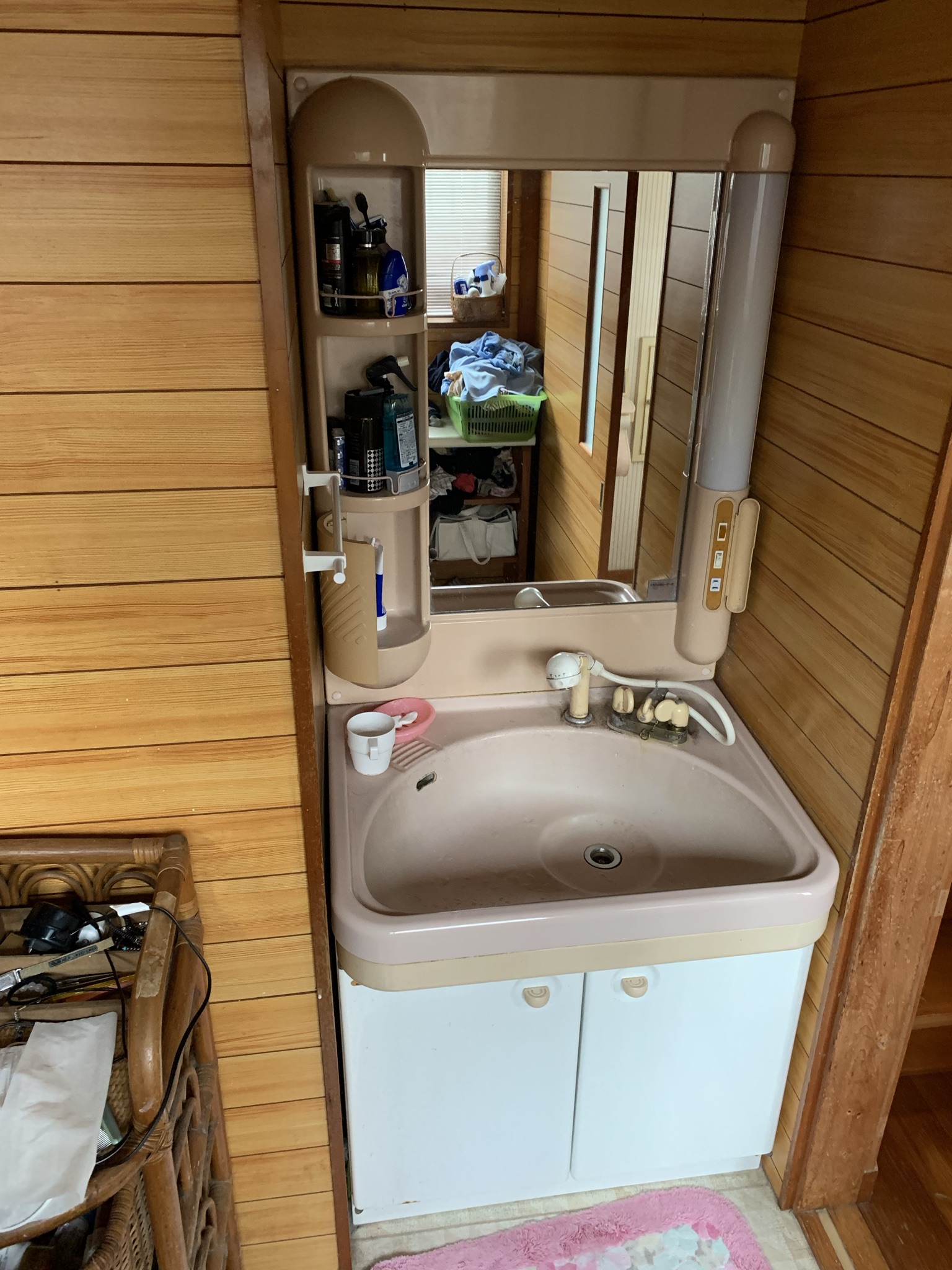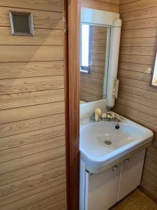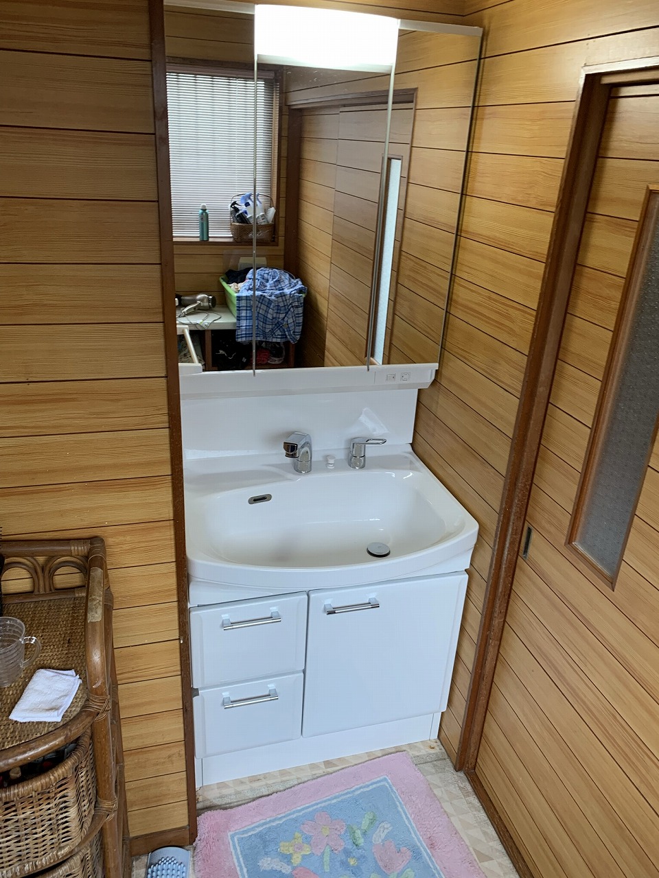 細かい物も収納出来るように、三面鏡タイプのミラーキャビネットとしました。