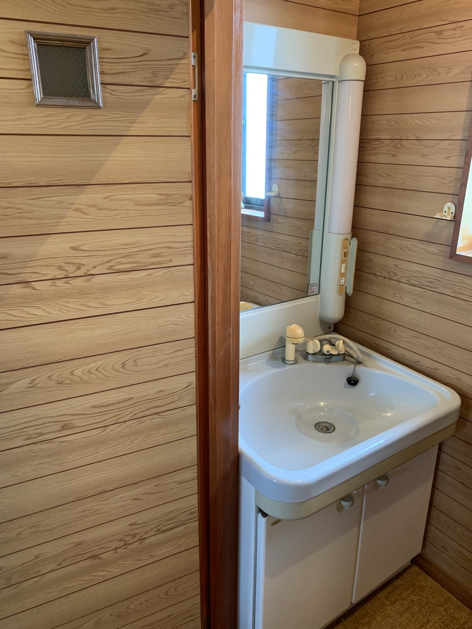 2階の洗面台はトイレ内にあり、奥行きが少ない方が使いやすいということと、